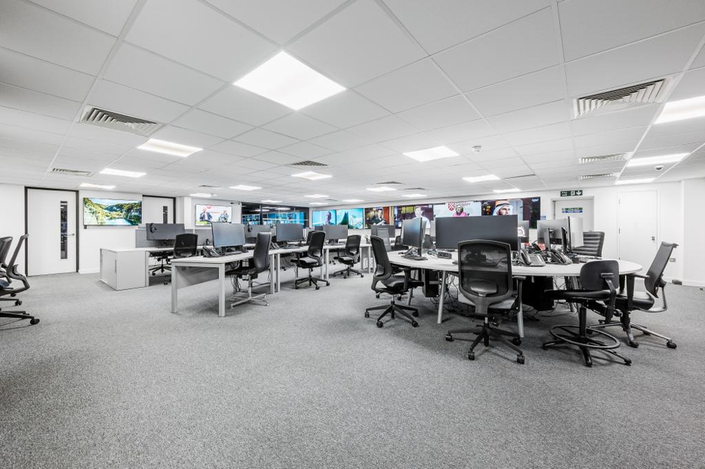 Dynamic newsroom spaces designed for fast-paced live news production.